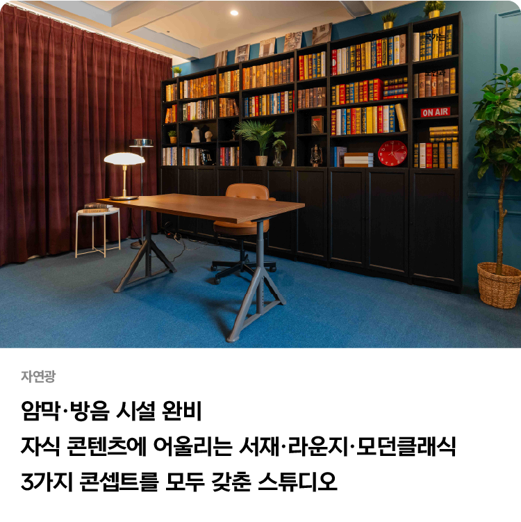 [서재 배경] 클래식한 책장과 소품이 배치되어 다양한 영상과 사진을 촬영할 수 있습니다.